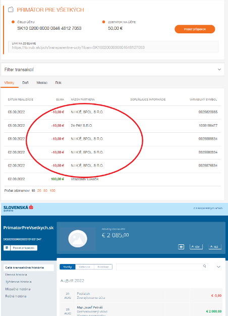My k tomu dodávame, že príhoda názorne ilustruje jeden z nedostatkov transparentných účtov. Tie existujú len ako komerčný bankový produkt vymyslený pre iné účely ako sú voľby. Transparentné účty vo verejnej zóne nezobrazujú, kto je ich skutočným majiteľom, ale iba vymyslený názov. Je preto veľmi jednoduché napodobniť transparentný účet politického súpera a naplniť ho diskreditačnými finančnými operáciami.