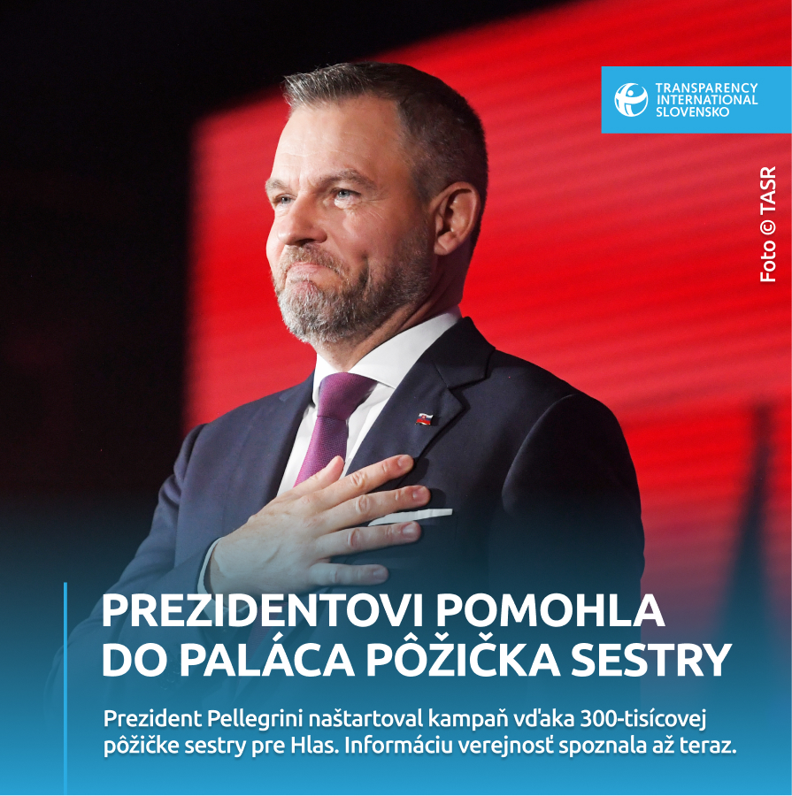 Prezident Peter Pellegrini rozbehol vlaňajšiu prezidentskú kampaň vďaka 300-tisícovej pôžičke od sestry. Pôžičku doteraz pred verejnosťou tajili, dozvedela sa o nej až teraz z výročnej správy Hlasu zverejnenej na webe Ministerstvom vnútra. Pellegrini pritom celý čas tvrdil, že kampaň financuje z darov spolustranníkov, čo nebola celá pravda. Na pôžičku upozornil portál Aktuality.